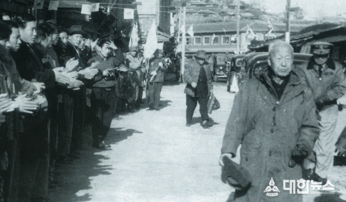 ▲육군사관학교 방문을 위해 진해를 찾은 이승만 대통령이 진해시민의 열렬한 환영을 받고 있다(53. 4. 10).