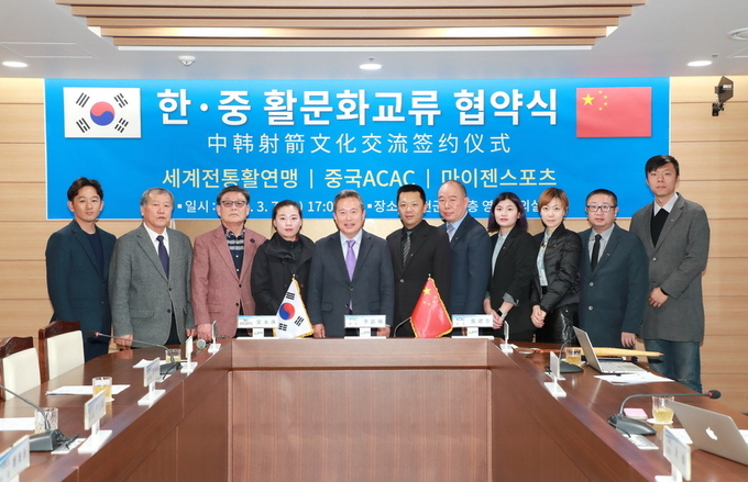 지난7일 오후5시 협약식에는 이현준 세계전통활연맹 회장, 중국 ACAC회장과 임원을 비롯한 중국 스포츠관광 전문회사인 마이젠스포츠 안영수 대표와 15명의 관계자들이 함께 배석했다.