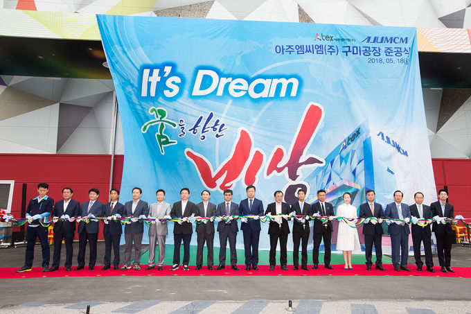 이날 준공식에 이묵 구미시장 권한대행과 시․도 관계자, 백승주 국회의원, 이홍희 도의원, 윤종호 구미시의회 산업건설위원장, 정원창 아주엠씨엠㈜ 대표와 임직원, 철강업체 및 국내외건설사, 고객사 관계자 등 600여 명이 대거 참석했다.