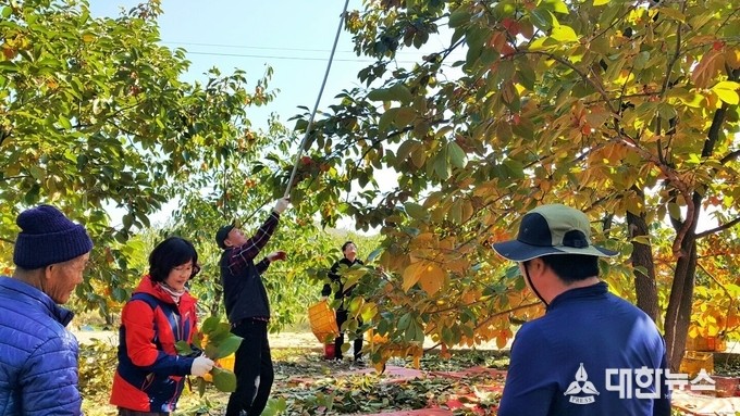 이날 감 따기에 동원된 인원으로는 시청의 축산진흥과·외남 향우회원, 남상주농협 외남지점 직원, 면행정복지센터직원 등 30여 명이 모였다. 이들은 감 수확 장소인 외남면 소은리에 소재한 노부부(김인택, 74세)의 감 밭에서 가을볕에 얼굴을 붉힌 채 보람 찬 구슬땀을 흘렸다.