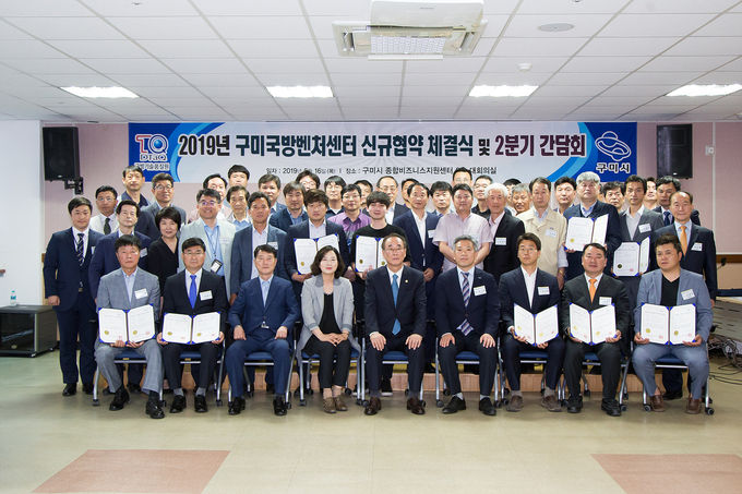 16일 오후 4시 구미시 종합비즈니스지원센터 2층 대회의실에서 열린 협약 식에서 구미국방벤처센터(이하 구미센터)는 2014년 개소 당시 14개 협약기업으로 출발해 매년 단계적으로 협약을 확대해왔는데 올해 들어 신규기업을 포함해 총50개 기업과 협약체결실적을 보였다.