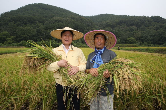 이병환 군수는 “매년 첫 수확한 벼를 어르신들에게 나눠드리는 미담을 전해 들었다”며 한 달음에 벼 베기 현장을 찾아 직접 콤바인을 조작하며 벼 수확 일손을 도우며 첫 수확의 기쁨과 노고를 치하했다.