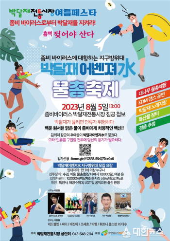 (대한뉴스 이영호기자)=“박달재에 좀비가 나타났다!” 박달재전통시장을 침공한 좀비바이러스에 맞설 지구방위대가 되어 물총전투를 벌이는 이색적인 콘셉트의 축제가 열린다.