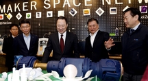 ▲ 박용만 두산그룹 회장(가운데)이 3월 21일 경남창조경제혁신센터를 방문해 입주기업 중 하나인 KATEM(산업기계 구동축 생산업체)이 3D프린터로 제작한 시제품에 대한 설명을 듣고 있다.박용만 두산그룹 회장은 21일 경남창조경제혁신센터를 방문했다. 두산그룹은 경남창조경제혁신센터 전담기업으로, 오는 4월 센터 출범 1주년을 앞두고 있다.박 회장의 이날 센터 방문은 그룹회장직 승계를 앞두고 센터 개소 후 1년간 성과와 운영현황을 다시 한번 점검하기 위해 이뤄졌다. 박 회장은 이 자리에서 “정부 지원정책이 많은데 잘 알지 못하는 경우가 많다”며 “센터를 통해 필요한 정보를 모두 얻어갈 수 있길 바란다”고 말했다. 경남창조경제혁신센터는 ▲메카트로닉스(중소∙벤처기업육성) ▲물산업(해수담수화 국산화 업체 육성) ▲항노화 산업(창업 및 판로개척 지원) 등 3대 중점 추진과제를 통해 지난 한해 67개 업체를 지원했다.특히 전담기업 두산의 교육 인프라를 활용한 지역인재 육성에도 앞장서, 퇴직임원 경영 멘토링, 고용일자리 사업본부 구축, 창원대 글로벌 워터 엔지니어링 과정 개설 등 다양한 프로그램을 운영 및 계획 중이다. since 1995 대한뉴스 홈페이지 ht