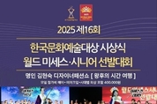 ▲포스터. (대한뉴스 김기준 기자)=미래 K-Culture 주역 발굴! 미와 열정 갖춘 기혼 및 시니어 여성들의 무대 마련! 한국 문화예술계를 빛낼 인재를 발굴하고 시상하는 '2025 제16회 한국문화예술대상 시상식'과 함께, 당당한 아름다움과 열정을 갖춘 기혼 여성 및 시니어 여성을 위한 '월드 미세스 & 시니어 선발대회' 참가자를 모집한다. 행사 개요 구분 내용 행사명, 2025 제16회 한국문화예술대상 시상식 및 월드 미세스 & 시니어 선발대회 일시 2025년 11월 26일 (화) 오후 5시 장소 부산 농심호텔 허심청 2층 대강당 주최 한국문화예술시상식 조직위원회, 월드 미세스 & 시니어 선발위원회 주관 모델리아 엔터테인먼트, 뉴코리아뉴스타임, 대한방송문화뉴스, 한국문화예술신문사 월드 미세스 & 시니어 선발대회 참가 안내 미(美)와 열정, 당당한 아름다움을 보여줄 여성들의 많은 관심과 참여를 기대한다. 부문자격접수 기간 마감 ▲미세스 (Mrs.)만 35세부터 55세, 선착순 20명 ▲시니어 (Senior)만 56세부터 75세 11월 6일 (화)부터 시작, 선착순 20명 마감, 접수 방법▲접수 시작일: 11월 6일 (화)부터