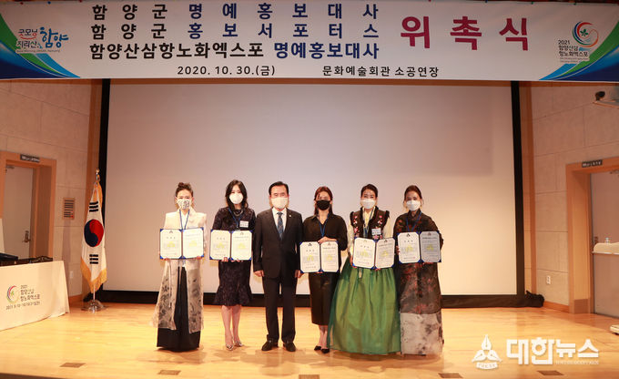 (대한뉴스김기준기자)=함양군(군수 서춘수)과 함양산삼항노화엑스포조직위(위원장 김경수)는 30일 오후 문화예술회관 소공연장에서 코리아한복모델협회(회장 서채린) 회원 21명과 명예홍보대사 및 홍보서포터즈 위촉식을 개최하였다.