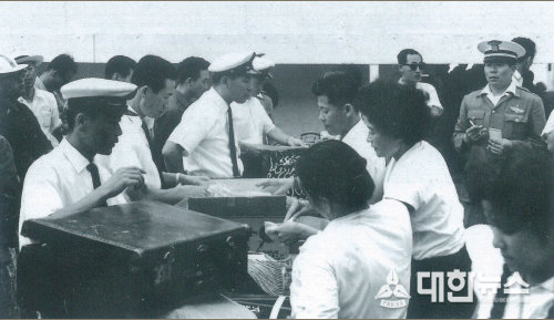 일본에 억류되었던 동포들이 부산항에 도착, 입국수속을 하고 있다(60. 7. 28).