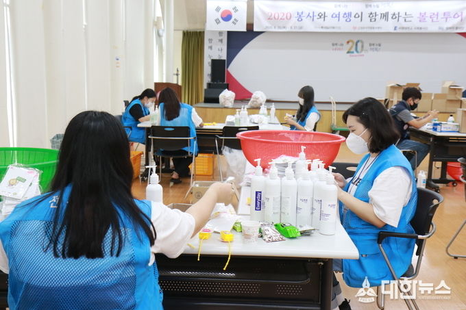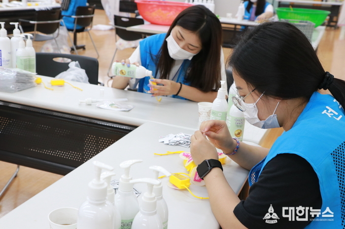 이번 활동은 전라북도와 전주시 주최 전주시자원봉사센터 주관으로 전주권 대학생연합봉사단 20명이 참여해 2학기 개학을 맞아 등교를 준비중인 초·중고등학생들을 위한 휴대용 가방걸이 손소독제 1,400개를 제작 및 포장을 통해 지역사회 코로나19 확산방지 캠페인을 진행하였다.