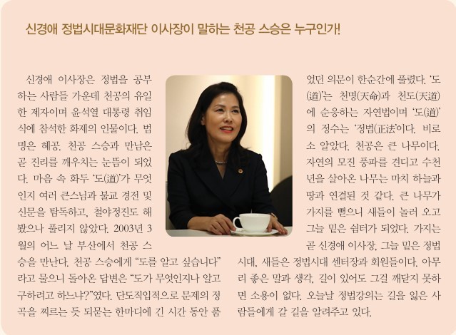 우리나라는 기성종교, 신흥종교, 민족종교 등 다양한 종교가 많다. 신도들은 각자 자신이 믿는 종교의 교리를 진심으로 알아듣는다. 그렇다면 천공은 무슨 종교일까? 모든 상식을 깨는 신 패러다임 연구소인 정법시대다. 종교의 역할과 기능은 선과 악, 옳고 그름을 구별하고 도덕적인 행동을 장려한다. 그런데 이 시대는 자신의 종교가 아니면 험담을 일삼기도 한다. 최근 천공은 남북통일 문제를 비롯한 정치경제 문제에서 그를 떼어놓고 생각할 수 없을 정도로 화제의 인물이다.