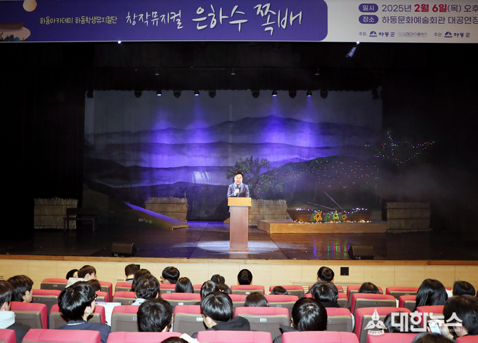 공연장에는 하승철 하동군수를 비롯해 관내 초·중·고등학교 학생들, 지역 주민 등 300여 명이 참석해 객석을 가득 메웠다.