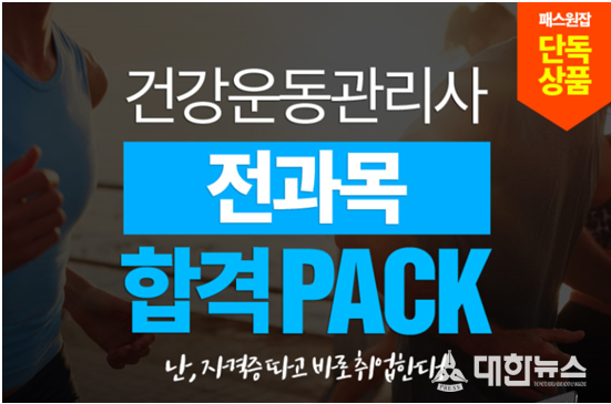 'KG패스원 패스원잡'은 2017 건강운동관리사 시험 대비 '전과목 합격PACK'을 새로이 출시했다고 밝혔다. 이번 전과목 합격PACK은 KG패스원 패스원잡이 업계 내 단독으로 출시한 상품이다. 건강운동관리사는 최근 체대생들 사이에서 유망직종으로 부상하고 있다.