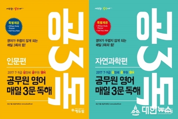 ㈜에듀윌(대표 정학동)이 출판한 공무원 영어 독해 교재 ‘공3독’이 공시생 블라인드 테스트에서 소비자만족도 5점 만점에 4.5점을 달성했다. 에듀윌 ‘공3독’ 도서는 영어 독해를 다루고 있는 공무원 수험서다. 이 교재는 수험생들이 매일 3개의 독해 지문을 풀 수 있도록 구성해, 영어 과목에 익숙해 질 수 있도록 돕고 있다.