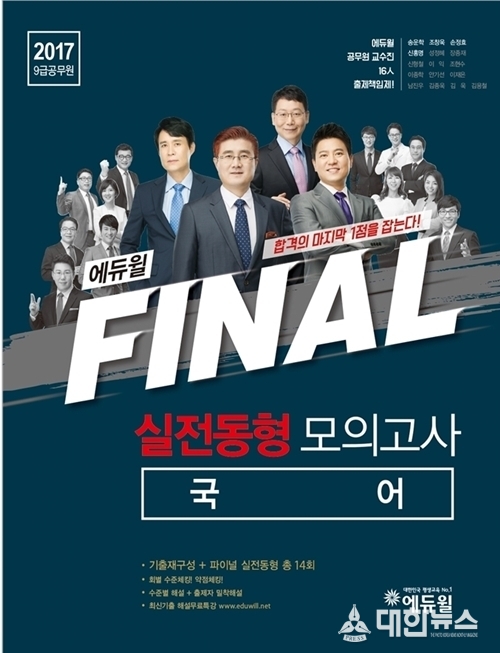 에듀윌은 총 14회 분의 실전 모의고사를 담은 <2017 9급 공무원 파이널 실전동형 모의고사>를 출간해, 수험생들이 취약 영역을 점검하고 실전 감각을 향상시킬 수 있게 했다. 동 교재는 국어, 영어, 한국사, 사회, 행정법총론, 행정학 등 총 여섯 과목이 출간됐다.