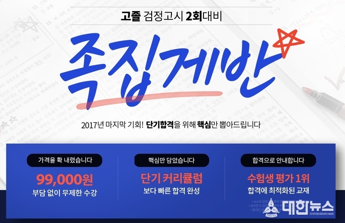 ㈜에듀윌(대표 정학동)이 2017년 검정고시 2회 시험을 대비하는 수험생을 대상으로 핵심만 뽑고 가격은 낮춘 ‘족집게반’을 출시했다.