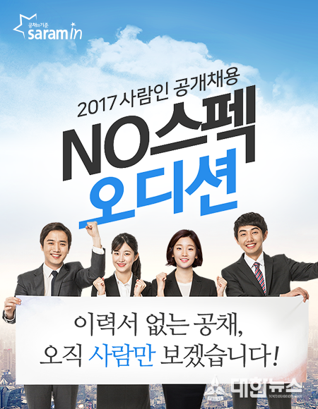 사람인의 사람인에이치알(대표 이정근, 143240)이 2017년 신입사원 공개채용을 실시한다. 이번 공채는 블라인드 채용으로 진행하며, 지원자의 스펙은 전혀 보지 않는다는 방침이다. 이미 현대자동차, SK, KT 등을 비롯한 일부 대기업에서는 오디션을 비롯한 다양한 방식의 열린 채용 형태로 신입사원을 선발하고 있다. 사람인 역시 단순 스펙에 의한 평가 대신 실제적인 직무 관련 역량과 열정 중심의 평가로 인재를 뽑기 위해 블라인드 방식의 채용제도를 도입했다.