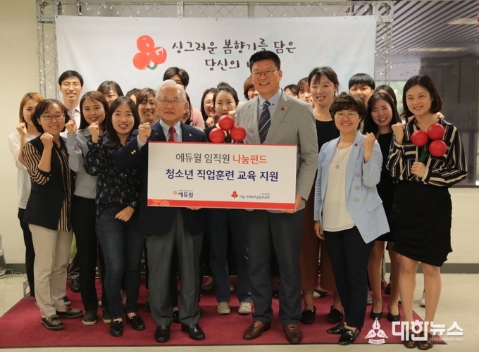 ‘에듀윌 임직원 나눔펀드’는 임직원들이 매월 급여의 일정금액을 모아오고 있으며, 모금된 금액만큼 회사가 1대 1로 기부금을 마련해 매년 사회 취약계층에게 사랑을 전하고 있다. 에듀윌 사회공헌위원회는 양형남 회장을 중심으로 저소득층 PC기증부터 선물 전달 등 다양한 행사와 기부를 이어오고 있으며, 지난 6월에는 서울 사랑의열매와 임직원 나눔펀드 ‘착한일터’ 협약을 맺기도 했다.