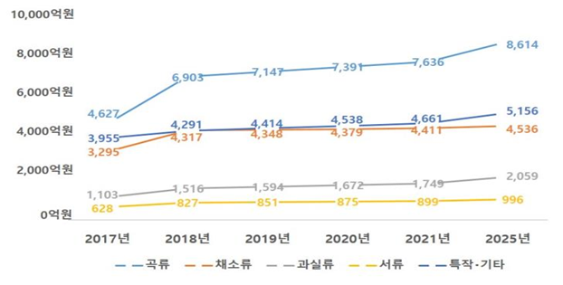 ▣ 품목별 친환경농산물 시장규모 전망(농촌경제연구원)
