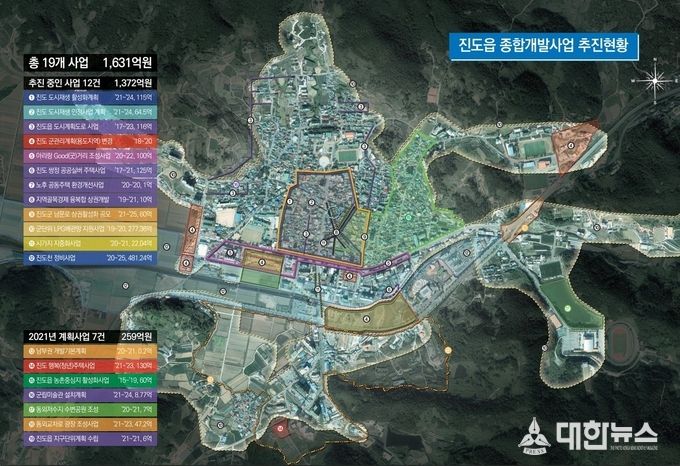 (대한뉴스 박청식기자)=진도군이 코로나19 확산으로 침체된 지역경제 활성화를 위해 진도읍 종합개발사업을 추진, 총사업비 1,631억원을 투입하는 등 발빠르게 움직이고 있다.