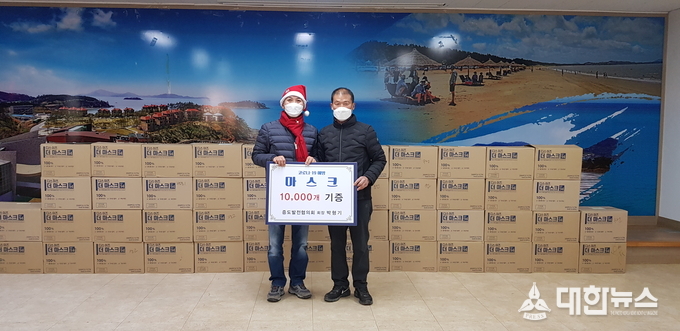 증도발전협의회 박형기 회장은 2018년 뇌경색 판정을 받았지만 증도면 발전을 위해 모든일에 앞장서고 있으며, 이번에는 증도면 주민들의 건강을 위해 지난 18일 코로나예방마스크 10,000개를 기증하였다.