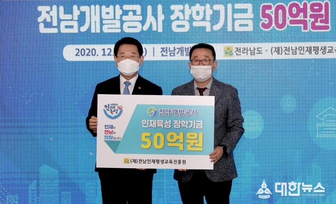 (대한뉴스 박청식기자)=전라남도는 23일 전남개발공사가 앞으로 2년간 25억 원씩 총 50억 원의 장학기금을 (재)전남인재평생교육진흥원에 기탁한다고 밝혔다.