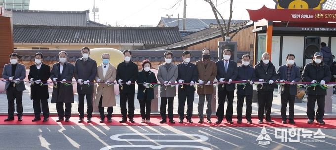 대한뉴스 박청식기자)=강진군은 지난 24일 이승옥 군수를 비롯한 병영 사회단체장 및 마을이장, 관련 음식점대표와 면민 등 50여 명이 참석한 가운데 병영 돼지불고기거리 공공시설물 설치 준공식을 개최했다.