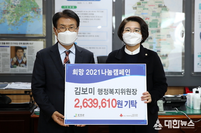 김보미 위원장은 12월 의정활동비와 월정수당 2,639,610원을 모두 기탁했으며, 작년에도 12월 의정활동비를 기탁한 바 있다.
