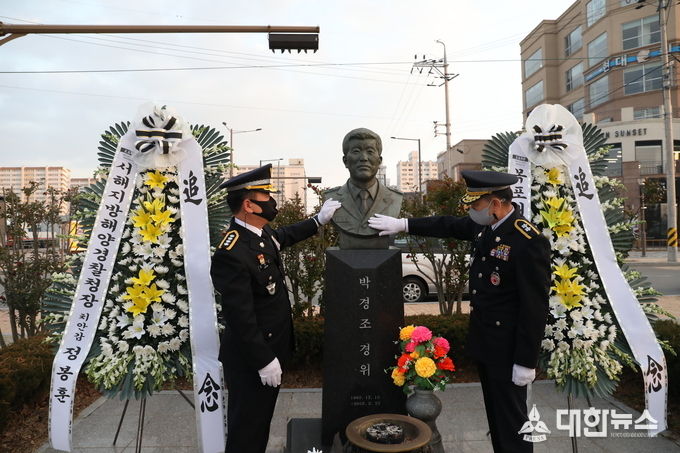 이어 정청장은 목포 북항 인근의 노을 공원으로 이동해 해양주권 수호를 위해 순직한 故 박경조 경위의 흉상에 헌화, 분향했다.