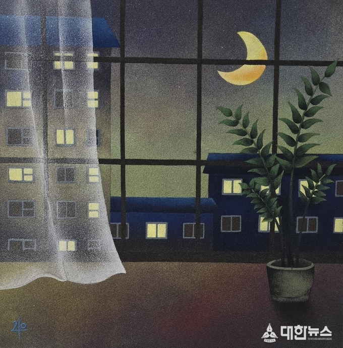 ▲경남도지사상을 받은 무주 이나영 작가의 석채화 '고요한 밤'