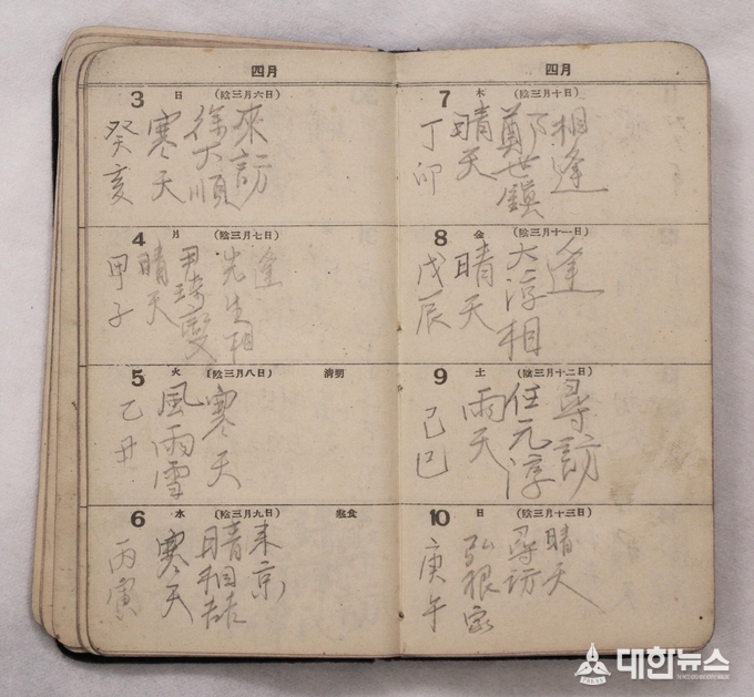 또한 ‘일기 수첩’은 1949년부터 1950년 1월까지 한훈 선생의 일상이 날짜별로 기록된 자료로, 날씨와 행적, 교류 인물 등이 담겨 있어 당시 독립운동가들의 활동과 교류 양상을 보여주는 값진 기록이다.