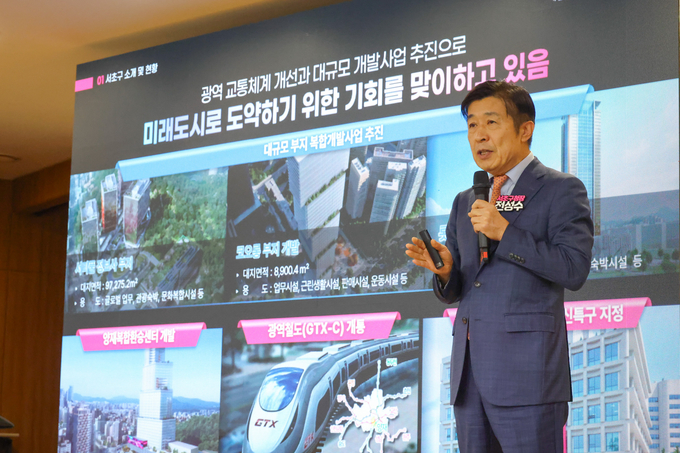 앞으로도 구민 일상은 더 행복하게 챙기면서 서초 도시경쟁력을 강화해 백년대계를 준비해 나가는 데 집중할 것입니다. 백년대계를 이끌 핵심사업으로 서초복합 통합개발(서초타운 및 GTX-환승시설 통합개발)은 추진 중이며 광역버스 환승센터가 완성되면 양재역은 트리플 역세권으로 거듭나고, 강남역 버스열차 문제도 속 시원하게 풀리게 됩니다. 신청사 부지가 될 도시혁신구역(화이트존)은 민간투자 방식으로 추진되는 전국 최초의 복합청사 모델입니다. 2029년 착공, 2032년 준공을 목표로 속도감 있게 추진하고 있습니다.