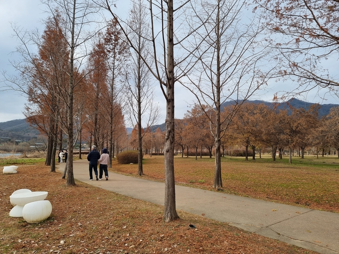 (대한뉴스 이경화 기자)= 경기도 남양주시 조안면에 있는 물의정원은 2012년 한강 살리기 사업으로 조성한 약 2만 평의 수변공원이다. 북한강을 따라 강변산책길, 꽃밭, 뱃나들이교, 포토존 및 자전거길과 연결되어 많은 사람이 찾는다. 특히 봄에는 꽃양귀비, 가을에는 황화코스모스 등 아름다운 꽃밭이 펼쳐져 연인과 산책하고 가족 나들이하기도 좋은 곳이다. 계절마다 새로운 모습을 느낄 수 있는 산책 명소라는 입소문을 듣고 직접 찾아갔을 때는 겨울 초입. 아마도 지난 계절에는 아름다운 꽃과 초록으로 빛나던 나무와 시원한 강바람이 불었겠지 상상하며 이곳저곳을 둘러봤다. 강가를 향해 축 처진 나무줄기, 흔들리는 갈대, 주머니에 손을 넣고 산책을 즐기는 사람들 모습은 겨울 속 고요함이 느껴졌다. 입장료와 주차 모두 무료라는 점도 부담 없이 찾을 수 있는 이유가 된다. 또한 도심에서 멀지 않은 곳에서 자연의 시간을 깊이 느낄 수 있다. 어느 날 하루는 물의정원에서 천천히 걸으며 계절의 색을 만나보는 것은 어떨까.