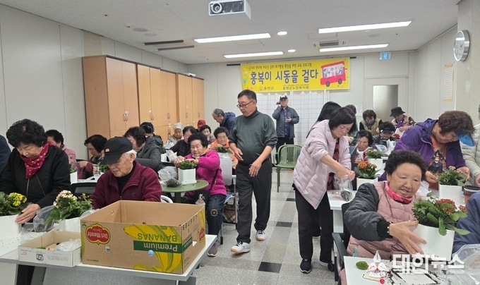 어르신들은 각자의 개성을 담은 꽃 작품을 만들며 즐거운 시간을 보내고 서로의 작품을 공유하며 화기애애한 분위기를 만들었다.