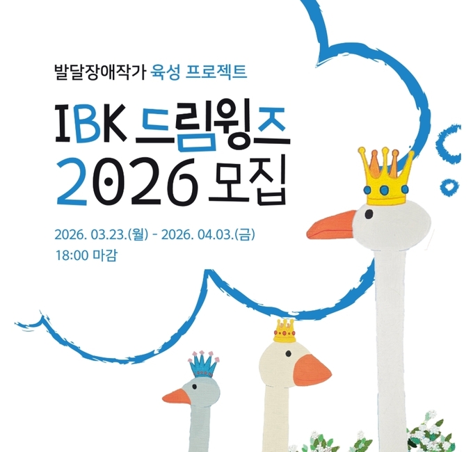 (대한뉴스 한원석 기자)=IBK기업은행(은행장 장민영)은 밀알복지재단과 함께 발달장애 작가 육성 프로젝트 ‘IBK드림윙즈 2026’ 지원 대상을 오는 23일부터 모집한다고 밝혔다.