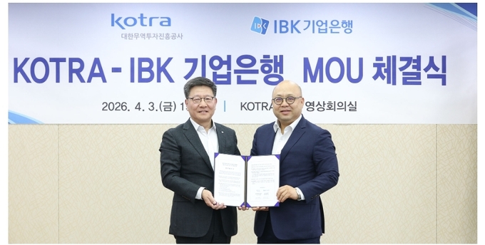 IBK기업은행(은행장 장민영)은 지난 3일 서울 서초구 대한무역투자진흥공사(이하 코트라) 본사에서 코트라와 ‘중소기업 해외시장 개척 지원을 위한 업무협약’을 체결했다고 6일 밝혔다.