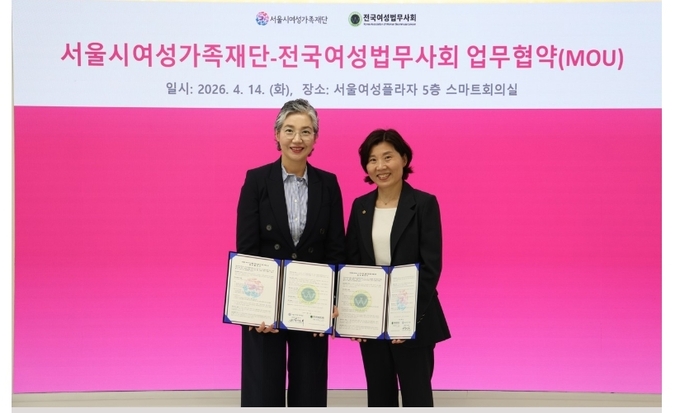 (대한뉴스 한원석 기자)=서울시여성가족재단(대표이사 박정숙)은 4월 14일(화), 전국여성법무사회(회장 장화선)와 양성평등 문화 확산과 범죄 피해자 대상 법률 지원 체계 구축을 위한 업무협약(MOU)을 체결했다고 밝혔다.