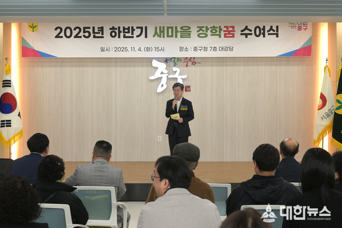 (대한뉴스 김기준 기자)=서울 중구(구청장 김길성)는 지난 4일 중구새마을지도자협의회(지회장 김명곤)가 중구청 중구홀에서 '장학꿈 수여식'을 개최해, 새마을지도자 자녀들에게 장학금을 전달했다고 밝혔다. 이번 수여식에서는 58명의 중등·고등·대학생 자녀에게 총 3천만원의 장학금이 전달됐다.