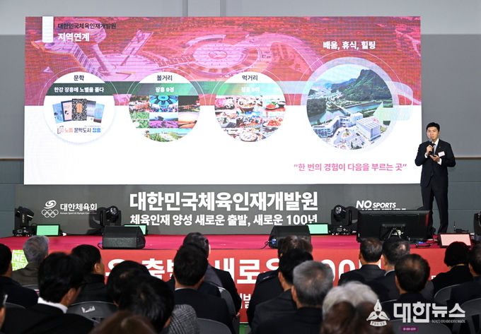 (대한뉴스 김기준 기자)=대한체육회(회장 유승민)는 12월 11일(목) 전남 장흥군에서 대한민국체육인재개발원(이하 개발원) 개원식을 개최하며, 대한민국 체육인 교육 및 연수의 새로운 전기를 마련했다. 개발원은 국가 스포츠 발전을 이끌 핵심 인재를 전문적으로 육성하기 위한 종합 교육기관으로, 2022년 착공 이후 약 2년간의 준비를 거쳐 이날 개원식을 기점으로 본격적인 운영에 들어갔다.