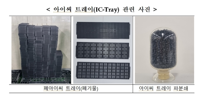 아이씨 트레이’는 반도체 포장·검사 공정에서 집적회로(IC칩)을 얹어 보호·운반하는 운반체로서 반도체 주요 생산국인 국내에서 많이 사용되고 있으며, 수차례 반복 사용하다가 기준을 충족하지 못하면 제품형태의 폐기물로 배출되어 파쇄‧분쇄를 거쳐 다시 ‘아이씨 트레이’ 제조에 활용된다.