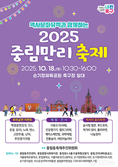 ▲축제포스터. (대한뉴스 김기준 기자)=서울 중구(구청장 김길성)는 오는 18일(토) 오전 10시부터 오후 6시까지 중림동 손기정체육공원 축구장 일대에서 ‘2025 중림만리 축제’가 열린다고 밝혔다. 올해로 3번째를 맞는 중림동의 날(10월 둘째 주 토요일)을 기념하여 중림동축제추진위원회(위원장 이성효)가 주최하고 지역 기관, 주민, 상인 등이 참여하여 다채로운 소통의 장을 마련한다. 역사문화 명소탐방 (오전 10시): 사전 모집된 초등학생 탐방단 20명이 해설사와 함께 손기정체육공원을 출발해 서소문역사문화박물관, 중림동약현성당, 손기정기념관 등 중림동의 역사와 문화를 탐방한다. 개회식 및 공연 (오전 11시): 개회식에서는 모범 유공표창 수여식과 행운권 추첨이 진행되며, 이후 학교 학생, 자치회관·복지관 수강생, 주민 등이 준비한 13개 공연 무대가 펼쳐진다. 댄스, 풍물패, 드론쇼, 방송댄스, 고전무용, 합창, 난타, 외국인 민속공연 등 다양한 장르의 공연을 즐길 수 있다. 주민 장기자랑: 노래, 춤, 악기 연주 등 다양한 재능을 가진 주민 10개 팀이 참여하며, 심사를 통해 후원 상품이 증정된다. 체험 부스: 과학체험, 드론체험, 이순신 거북선 만들기,