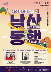 ▲포스터. (대한뉴스 김기준 기자)=가을의 남산을 만끽해보자. 서울 중구가 오는 11월 1일(토) 오전 8시, 국립극장에서‘중구민 걷기대회 남산동행’을 개최한다. 코스는 남산 북측순환로 4.5km다. 국립극장 문화광장에서 시작해 석호정, 필동쉼터를 거쳐 다시 국립극장으로 돌아오는 왕복 코스로 약 1시간가량 소요된다. 걷기에 관심이 있다면 누구나 참여할 수 있다. 참가자들은 오전 8시까지 집결해 준비체조 후 8시 20분부터 순차적으로 출발한다. 반환점인 필동쉼터 앞에서는 경품 응모권이 배부와 치어리딩 응원이 펼쳐져 활기찬 분위기를 더한다. 이벤트도 풍성하다. 걷기대회 참가자 모두에게 중구 건강마일리지 500점이 제공된다. 또한 행사장에는 ‘보물나무를 찾아라!’이벤트를 열어 간식을 증정한다. 또한, 걷기대회 참가 인증 사진을 찍은 후 SNS에 ‘#중구민걷기대회 #남산동행 #내편중구 #중구투어패스’ 해시태그와 함께 게시하면 22명을 추첨해‘스파렉스 찜질방 이용권’을 지급한다. 걷기대회에 앞서 오는 24일까지 중구민 걷기대회의 새로운 이름 ‘남산동행’ 4행시 공모전도 진행중이다. 중구 공식인스타그램 이벤트 게시물에 ‘좋아요’를 누르고 4행시를 제출하면 된다. △1등