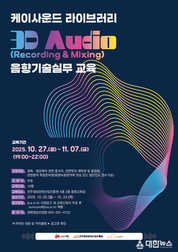 ▲포스터. (대한뉴스 김기준 기자)=전주시가 한국형 영화 효과음원을 더욱 풍성하게 만들 음향기술 분야의 전문인력양성에 나선다. 전주정보문화산업진흥원(원장 허전)은 오는 27일부터 11월 7일까지 한국형 영화 효과음원 플랫폼(케이사운드 라이브러리) 효과음원 제작을 위한 음향기술 교육과정을 운영한다고 10일 밝혔다. 이번 ‘케이사운드 라이브러리 3D Audio(Recording & Mixing) 음향기술교육’은 효과음원 제작에 필요한 전문 기술 과정으로, 한국형 영화 효과음원 제작에 필요한 전 음향기술교육이 전액 무료로 제공된다. 주요 교육 내용은 효과 음원 제작을 위한 △소리의 이해 교육 △모노, 스테레오 특성 및 이해 △믹싱 △다중채널 구성 △Immersive Audio 등 입체적 음향을 구성하는 Dolby Atoms 패닝 기술 중심의 커리큘럼으로 구성됐다. 교육은 약 2주간 전주정보문화산업진흥원에서 진행되며, 영화·영상 제작 관계자와 음향 관련 재학생·졸업생, 관련 분야 취업준비생 등 누구나 신청할 수 있다. 교육 참여 희망자는 오는 23일까지 진흥원 누리집(www.jica.or.kr)에서 신청서를 작성해 제출하면 되며, 기타 자세한 사항은 전화(0