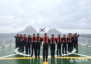 ▲추석에도 독도를 지킵니다...동해해경 3016함, 해양주권 다짐. (대한뉴스 김기준 기자)=동해해양경찰서(서장 김환경)가 민족의 대명절인 추석 연휴에도 독도와 동해 해역의 해양주권 수호를 위해 현장 근무를 이어가며 빈틈없는 경계 태세를 유지하고 있다. 동해해경 3016함은 6일 독도 인근 해상에서 해양영토 수호 의지를 다지는 현장 행사를 실시하는 한편, 평소와 다름없이 경비·순찰과 긴급 구조 임무를 쉴 틈 없이 수행 중이다. 정환기 3016함 함장은 "추석 명절에도 동해해경은 독도와 울릉도 등 동해 바다를 지키며, 국민들이 안심하고 평온한 명절을 보낼 수 있도록 최선을 다하고 있다"고 밝혔다. 이어 "해양주권 수호와 국민의 생명·안전 확보에 빈틈이 없도록 하겠다"고 강조했다. ▲추석에도 독도를 지킵니다...동해해경 3016함, 해양주권 다짐. 동해해양경찰서는 연휴 기간 내내 동해 전 해역에 걸쳐 해양사고 예방과 신속한 구조 대응에 총력을 기울이며 국민의 안전을 지키는 데 만전을 기할 방침이다.