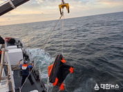 ▲서해해경청이 사고선박 주변해역에서 표류중인 구명벌 1대를 수거했다. (대한뉴스 김기준 기자)=서해지방해양경찰청(청장 이명준)은 지난 10일 군산시 어청도 인근 해상 전복 중국어선 A호(유망, 99톤급, 11명)의 실종자들(9명)을 찾기 위한 이틀째 수색을 이어가고 있다고 11일 밝혔다. 서해해경청에 따르면 사고 직후 광역구조본부를 설치, 비상근무 체제에 돌입하는 한편, 야간에는 해경 및 공군 항공기로 조명탄을 활용하여 유관기관 및 중국 해경과 함께 실종자 수색을 진행하고 있다. 동원 세력으로는 해경 함정 5척 등 함선 총 23척과 항공기 4대를 투입하여 주․야간 수색에 총력을 다하고 있다. 특히, 해경은 사이드스캔소나 장비를 이용해 사고선박 수중탐색을 통해 사고 선박 선체 위치를 확인하고 있다. ▲서해해경청이 사고선박 주변해역에서 표류중인 구명벌 1대를 수거했다. 한편, 사고 해점 주변 해역에서 표류중인 구명벌 1대를 수거해 사고 선박과의 관련 여부를 파악하는 등 수색 구조에 최선을 다하고 있다.