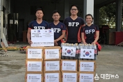 (대한뉴스 한원석 기자)=강원 홍천소방서(서장 이강우)와 조덕연·박홍숙 남·여의용소방대연합회장은 지난 14일 최근 대형 지진으로 피해를 입은 필리핀 세부 보고시티(Bogo City) 소방서에 한국라면 등 위문 및 격려 물품을 전달했다고 밝혔다. 보고시티소방서(서장 노우 디. 일란·Fire chief inspector Nde D. Ylrnan)도 강진으로 인한 내외부 건물파손으로 위험에 노출돼 외부에 막사를 설치 근무를 하고 있는 가운데, 이번 위문은 대형 지진으로 인명·재산 피해가 발생한 보고시티 일대에서 구조·복구 활동을 이어가고 있는 현지 소방대원들을 응원하기 위한 봉사활동으로 홍천소방서와 의용소방대연합회장이 자발적으로 마련해 진행했다. 조덕연·박홍숙 연합회장은 “재난 현장에서 고군분투하는 모든 소방대원들에게 경의를 표하며, 홍천군 의용소방대는 국내외를 막론하고 어려움에 처한 이웃을 돕는 일에 함께할 것”이라고 말했다. 노우 디 일란 보고시티 소방서장과 2소방국(FO2) 마크 프란시스 비코이(Mark Francis Vicoy)는 “국경을 넘은 응원과 격려는 처음 있는 일이어서 너무 놀랐다”며 “한국 홍천소방서에서 보내준 응원과 격려는 보고시티 소방관들에게