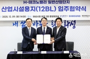 (대한뉴스 한원석 기자)=화성특례시 H-테크노밸리 일반산업단지(이하 산업단지)에 세계적 기업 삼성전자의 세 번째 첨단 물류거점(CDC, Central Distribution Center)이 들어선다. 시는 9일 시청 중앙회의실에서 삼성전자㈜, ㈜에이치테크노밸리와 ‘첨단 물류거점 조성을 위한 입주협약’을 체결하고, 삼성전자의 H-테크노밸리 일반산업단지 입주를 위해 상호 협력하기로 했다. 이날 협약은 삼성전자가 산업단지 내 산업시설용지(12BL) 약 6만4천㎡를 분양받기 위한 사전절차로, 화성시 및 산업단지 시행사인 ㈜에이치테크노밸리의 적극적인 노력과 삼성전자의 물류 고도화 전략이 맞물려 추진됐다. H-테크노밸리 일반산업단지는 화성시 양감면 요당리 일원에 73만 6천㎡ 규모로 조성 중인 반도체·자동차 부품 특화단지로, 현재 토지 보상을 완료하고 2028년 준공을 목표로 산업시설용지 분양과 단지 조성 공사를 진행하고 있다. 특히, 서해안고속도로 발안IC 및 평택제천고속도로 청북IC와 인접한 탁월한 교통망을 갖추고 있어, 반도체 및 미래차 소부장(소재·부품·장비) 기업들의 핵심 요충지로 떠오르고 있다. 삼성전자는 산업단지 내에 평택시와 고창군에 이어 자사의 세 번째