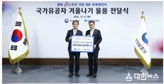 (대한뉴스 한원석 기자)=IBK기업은행(은행장 김성태)은 9일 국가보훈부 서울지방보훈청에서 ‘광복 80주년 기념 IBK후원챌린지’에 따른 국가유공자 겨울나기 기부물품 4억원 전달식을 진행한다고 밝혔다. ‘IBK후원챌린지’는 기업은행이 광복 80주년을 기념해 지난 7월부터 두 달간 진행한 국민참여형 기부 이벤트로 고객이 모바일뱅킹 앱 i-ONE Bank(개인) 내 이벤트 페이지에서 후원 대상을 선택하면 기업은행이 국가유공자에게 후원하는 방식으로 운영됐으며 75000여 명이 동참했다. 기부물품은 국가유공자 중 고독사 위험에 놓인 취약계층 3400명에게 전달될 예정이며 따뜻한 겨울을 날 수 있도록 월동 물품과 식품이 지원될 예정이다. 이번 전달식에는 김성태 기업은행장과 유일광 기업은행 개인고객그룹장, 권오을 국가보훈부 장관, 강윤진 국가보훈부 차관, 이승우 서울지방보훈청장 등이 참석해 국가유공자분들께 감사의 마음을 전하는 뜻깊은 시간을 가졌다. 이날 행사에 참석한 김성태 은행장은 “앞으로도 기업은행은 국가보훈부와 지속적으로 협력해 다양한 사회공헌 활동을 이어가며 보훈문화 확산과 사회적 가치 실현에 더욱 앞장설 것”이라고 밝혔다.