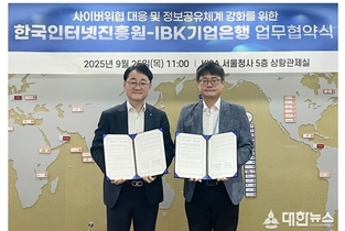 (대한뉴스 한원석 기자)=IBK기업은행(은행장 김성태)은 지난 25일 한국인터넷진흥원(원장 이상중)과 ‘사이버위협 대응 및 정보 공유 체계 강화를 위한 업무협약’을 체결했다고 밝혔다. 이번 협약은 날로 지능화되는 사이버 공격에 선제적으로 대응하고자 민간 부문 정보보호를 전담하는 한국인터넷진흥원과 협력해 사이버 공동 대응 체계를 마련하기 위해 체결됐다. 양 기관은 ▲사이버위협 정보 공유 강화 ▲금융 소프트웨어 신규 취약점 발굴 및 상시 정보 공유 ▲사이버위협 대응 협의회 정례 운영 등을 공동으로 추진한다. 기업은행은 이번 협약을 통해 사이버위협 대응 네트워크를 확장해 보안 수준을 높이고 공공·민간을 아우르는 보안 협력 체계를 구축할 예정이다. 박병삼 IBK기업은행 정보보호최고책임자는 “사이버 공격 대응의 핵심은 위협 정보를 선제적으로 확보하고 이를 활용한 즉각적인 대응”이라며 “앞으로도 다양한 기관과 협력해 기업은행의 사이버 보안 수준을 높이고 대응 역량을 강화하겠다”고 밝혔다.
