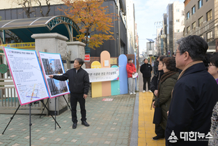▲주민 현장 설명회 사진. (대한뉴스 김기준 기자)=서울 중구가 흥인초등학교 주변 약 170m 구간의 전선 지중화 공사에 본격 착수했다. 공사가 완료되면 흥인초등학교 주변인 청구로6길 11 일대 와 다산로32길 주변 가공선과 전주가 모두 사라져 한층 쾌적하고 안전한 거리로 탈바꿈하게 된다. 흥인초 주변 도로는 어린이들의 통학로이자 지하철 5·6호선 청구역과 인근 주거지를 연결하는 생활 통로다. 그동안 복잡하게 얽힌 공중선과 시야를 가리는 전주로 인해 도시미관 저해는 물론, 안전사고 우려가 제기돼 왔다. 이에 흥인초 학부모와 동화동 주민들은 지속적으로 지중화를 요청했다. 구는 주민 불편 해소를 위해 2023년 7월 한국전력공사에 지중화 사업을 신청했고, 지난해 2월 정부 지원사업인 ‘그린뉴딜 지중화 사업’승인을 받았다. 이후 올해 2월 국·시비를 확보하며 본격적인 추진 기반을 마련했다. 이어 지난 4월 한전 및 통신사와 지중화 이행 협약을 체결하고 사전 준비 과정을 거쳐 마침내 지난 11월 첫 삽을 뜨며 착공했다. 공사는 내년 4월까지 가공선과 전주 철거를 목표로 하고 있다. 어린이 통학 시간대를 피해서 진행해 안전을 최우선으로 하고, 주민 불편도 최소화한다.
