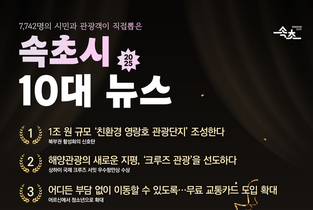 ▲속초시 2025년 10대 뉴스. (대한뉴스 김기호 기자)=시민이 직접 투표로 뽑은 속초시 10대 뉴스 선정이 마무리됐다. 1조 원대 규모의 친환경 영랑호 관광단지 조성계획 발표가 1위를 차지하며 속초의 미래를 향한 가장 큰 관심이 무엇인지를 시민이 보여줬다. 이번 10대 뉴스 선정은 네이버 폼을 활용해 시민과 관광객이 직접 참여하는 방식으로 진행됐다. 투표는 11월 20일부터 29일까지 열흘간 진행됐으며, 20개의 후보 뉴스 가운데 5개 이상 10개 이하를 선택하도록 했다. 그 결과 총 7,742명이 참여해 전년 6,055명 대비 27.8% 증가했고, 1인당 평균 6.43개를 선택해 총 49,812표가 집계됐다. 속초시는 득표수 상위 10개를 2025년 10대 뉴스로 확정했다. 1위를 차지한 뉴스는 ‘1조 원 규모 친환경 영랑호 관광단지 조성’이다. 이 사업은 장기미집행 도시계획시설 실효로 인한 난개발 우려, 산불 이후 방치된 펜션으로 인한 경관 훼손, 보행·차량 혼재로 발생한 안전 문제 등 그간 영랑호가 안고 있던 50년 이상의 오랜 문제를 해결하는 사업이다. 이를 위해 총 1조 원을 투입해 영랑호를 자연친화적 관광·문화 공간으로 재편하게 된다. 차수벽을