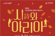 서울 서초구(구청장 전성수)는 오는 9월 24일(수) 오후 6시 30분, 서초문화예술회관 1층 아트홀에서 '제8회 클래식 판타지: 시詩와 아리아'를 개최한다고 밝혔다. '클래식 판타지'는 매년 가을 클래식 음악을 친숙하게 전달하기 위해 마련된 음악축제로, 지역 예술인들에게는 창작과 교류의 기회를 제공함과 동시에 문화예술 활동의 지속성과 다양성을 확대하기 위한 취지로 마련됐다. 이번 공연을 통해 가을밤을 수놓는 시와 아리아의 선율로 깊은 감동과 여운을 선사할 예정이다. 무대에는 ▲재능시낭송협회 시낭송가 ▲(사)한국문학예술협회 시낭송가 ▲아르모니아 중창단 ▲테너 정의근과 피아니스트 김지연 등이 올라 총 22편의 시 낭송과 중창·성악을 선보인다. 사회는 KBS 박주아 아나운서가 맡는다. '클래식 판타지'는 예스24를 통해 무료 예매가 가능하며, 기타 자세한 내용은 서초문화원 홈페이지(socc.or.kr) 또는 전화(02-2155-8607)로 문의하면 된다. 한편 서초문화원은 지역 문화의 보존 및 전승을 위해 2009년 출범한 이후, 다양한 문화 프로그램을 통해 문화예술도시 서초를 만드는 데 앞장서 왔다. 이와 함께 양재천 벚꽃등축제, 수요시네마, 서초아트페스티벌,